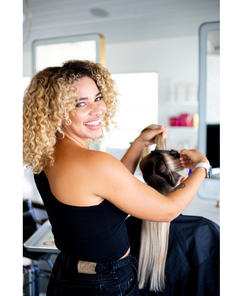 Autoblocante con tira de silicona para mantener el cabello en su lugar sin arrugas.