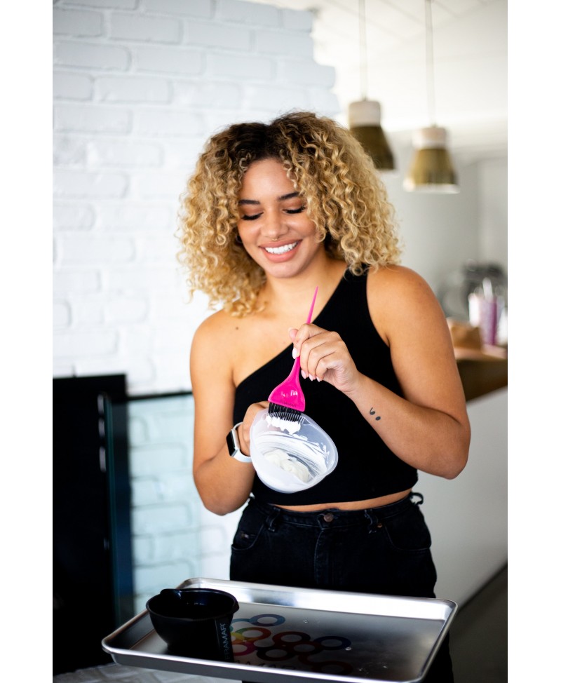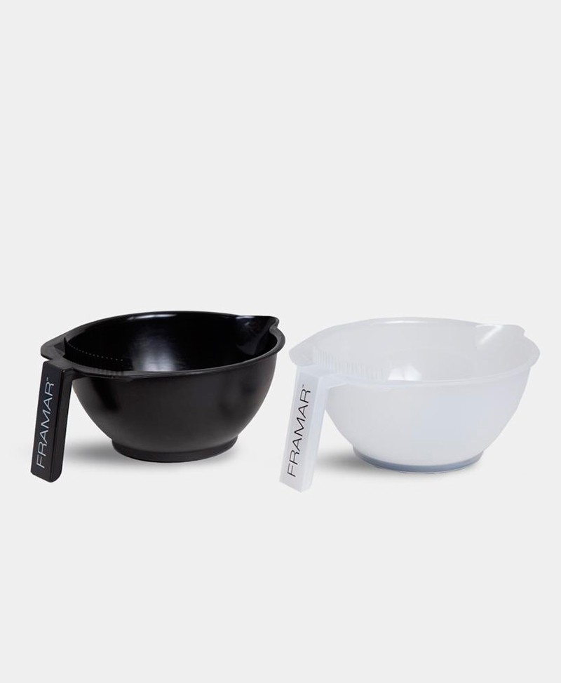 Los tazones tienen un fondo de goma y un pico de fácil vertido para tus colores, tratamientos y una fácil limpieza.