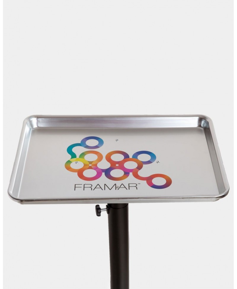 Tapa de bandeja de aluminio resistente a las manchas y al calor con el logotipo de Framar. La parte superior de la bandeja mide 43cm x 30cm.