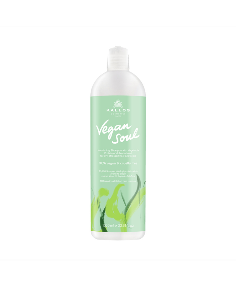 SHAMPOO NUTRITIVO KALLOS VEGAN SOUL – CON PROTEÍNA VEGETAL Y ACEITE DE AGUACATE PARA CABELLOS Y CUERO CABELLUDO SECOS Y AGOTADOS