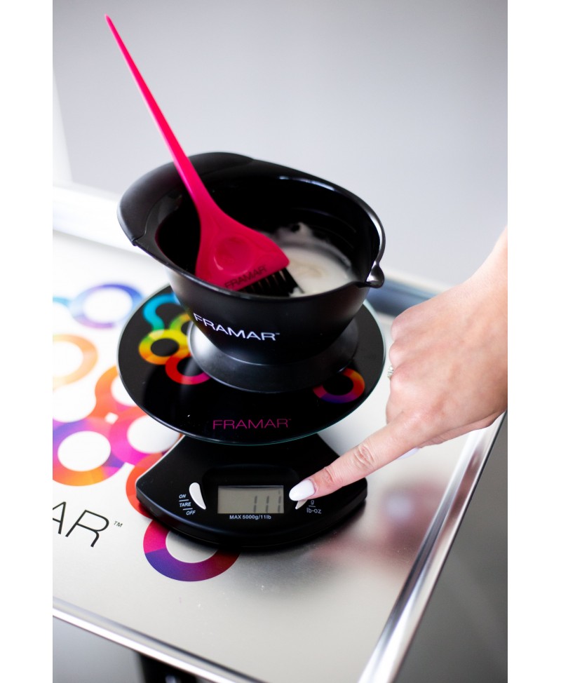 Las famosas cerdas AccuSoft de Framar están afiladas para recoger y distribuir el color al cabello de manera uniforme, rápida y precisa.